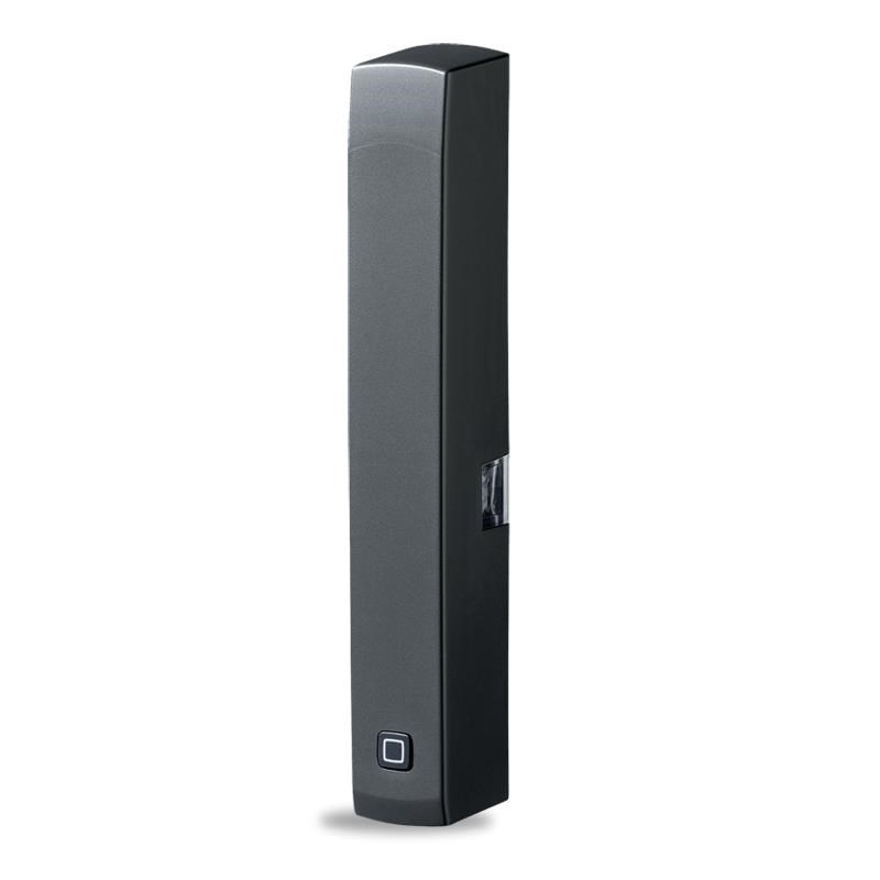 Bezdrôtový Okenný a dverový senzor - optický, antracitový (HmIP-SWDO-A) určený na použitie v vnútorných priestoroch je súčasťou systému chytrej domácnosti Homematic IP. Môže sa použiť na spoľahlivú ochranu všetkých typov okien a dverí pomocou inovatívnej optickej technológie na princípe infrared svetelnej bariéry s priloženým predným krytom v hnedom prevedení na prispôsobenie vzhľadu k rámu okna alebo dverí.