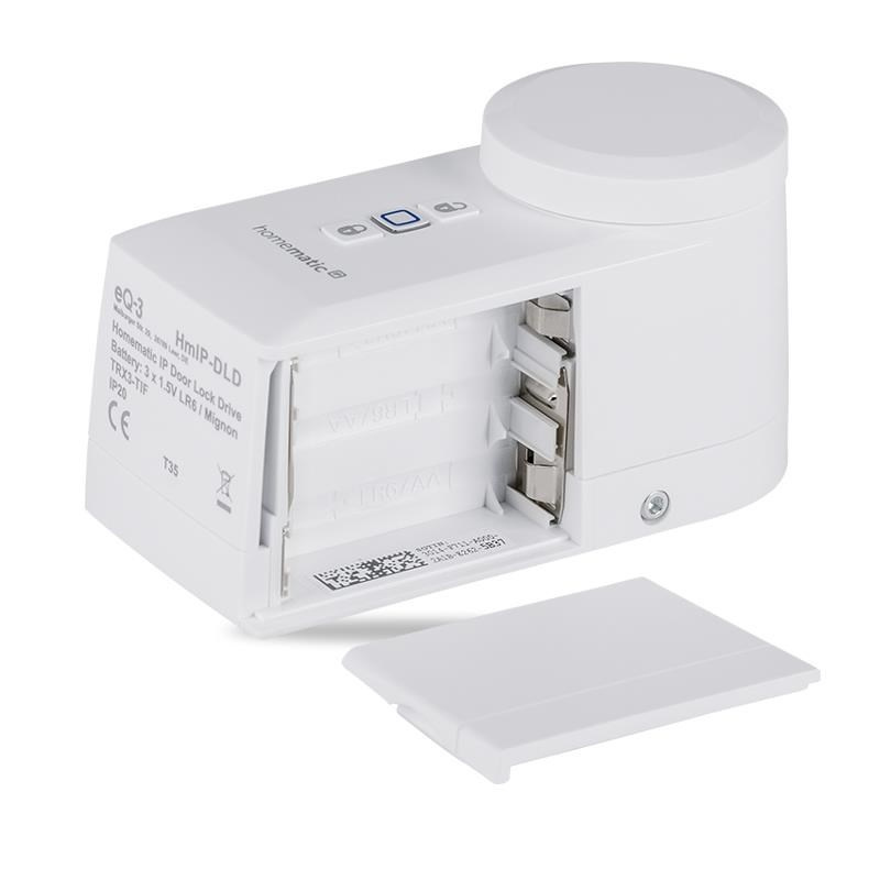 Bezdrôtový inteligentný Pohon dverného zámku (HmIP-DLD) určený pre pohodlné, motoricky poháňané odomykanie, zamykanie a otváranie dverí je súčasťou systému chytrej domácnosti Homematic IP.