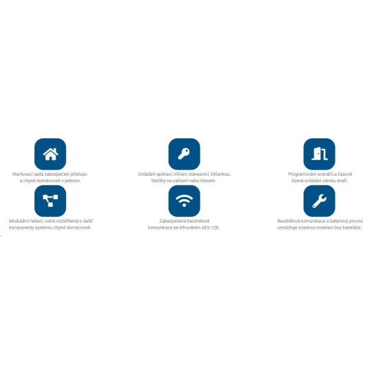 - Sada obsahuje štyri základné zariadenia na zabezpečenie a ovládanie prístupu do objektu.