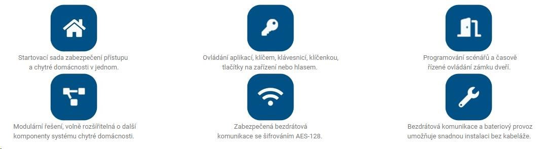 - Sada obsahuje štyri základné zariadenia na zabezpečenie a ovládanie prístupu do objektu.