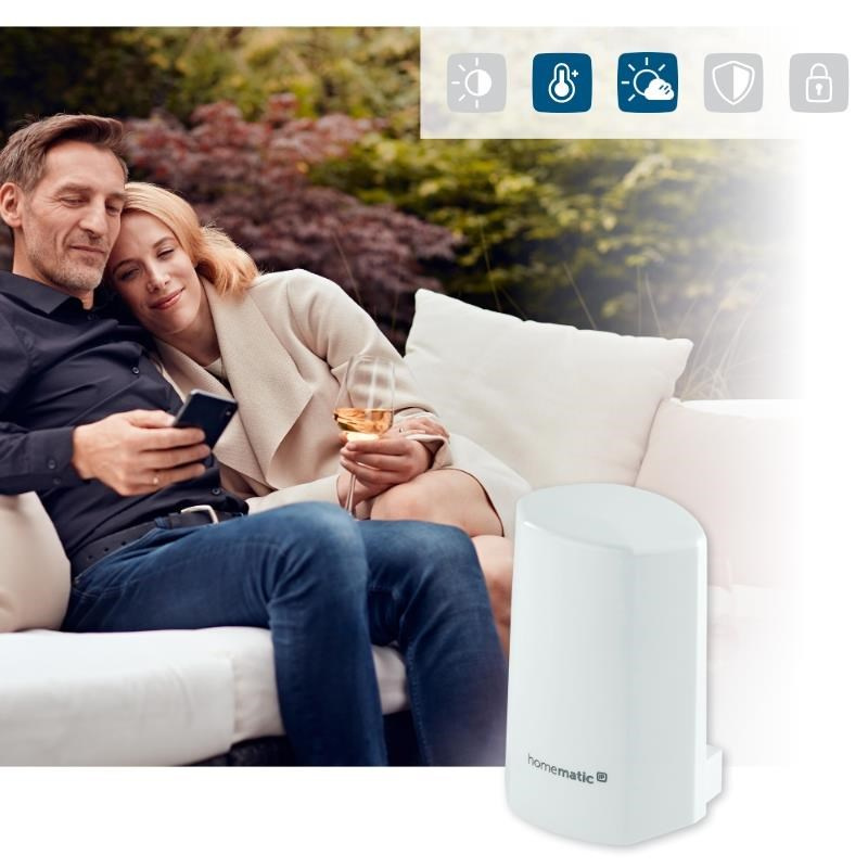 Kompaktný senzor s krytím proti nepriazni počasia a poveternostným vplyvom ponúka široké možnosti využitia v spojení s ďalšími zariadeniami systému Homematic IP. Zariadenie monitoruje vonkajšiu teplotu a relatívnu vlhkosť. Namerané hodnoty následne odovzdáva Centrálnemu jednotke (HmIP-HAP) a pripojeným zariadeniam Homematic IP, ktoré reagujú podľa vopred definovanej konfigurácie.