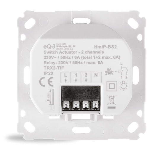 Homematic IP Spínací akční člen dvoukanálový - 6A, zápustná montáž - HmIP-BS2
