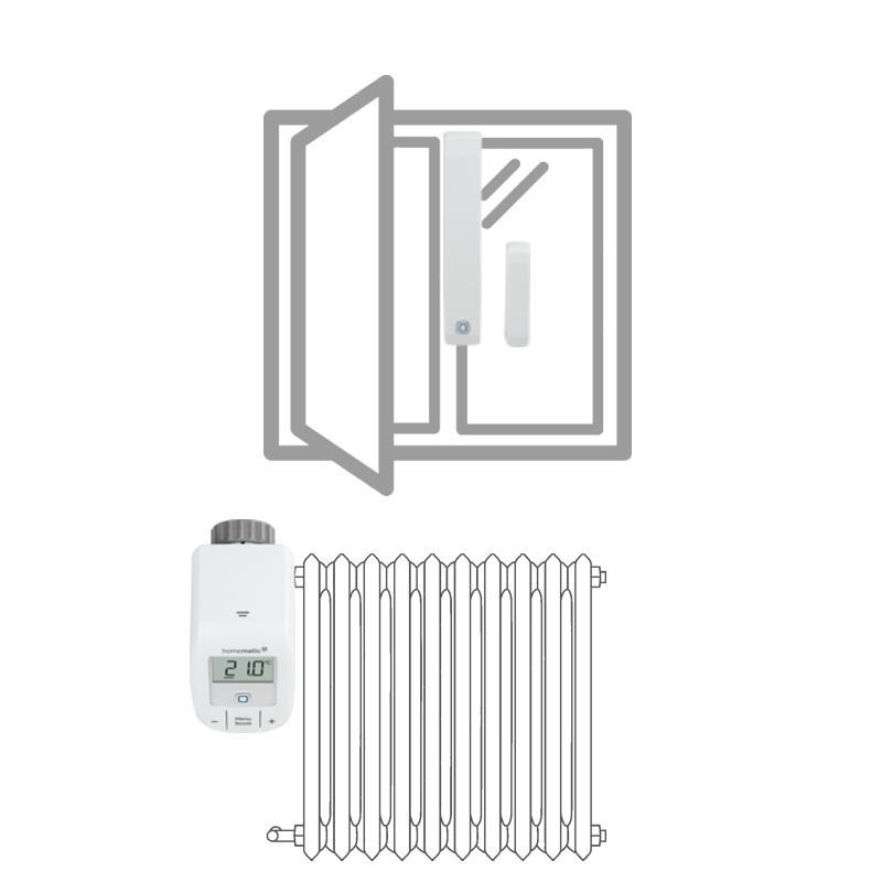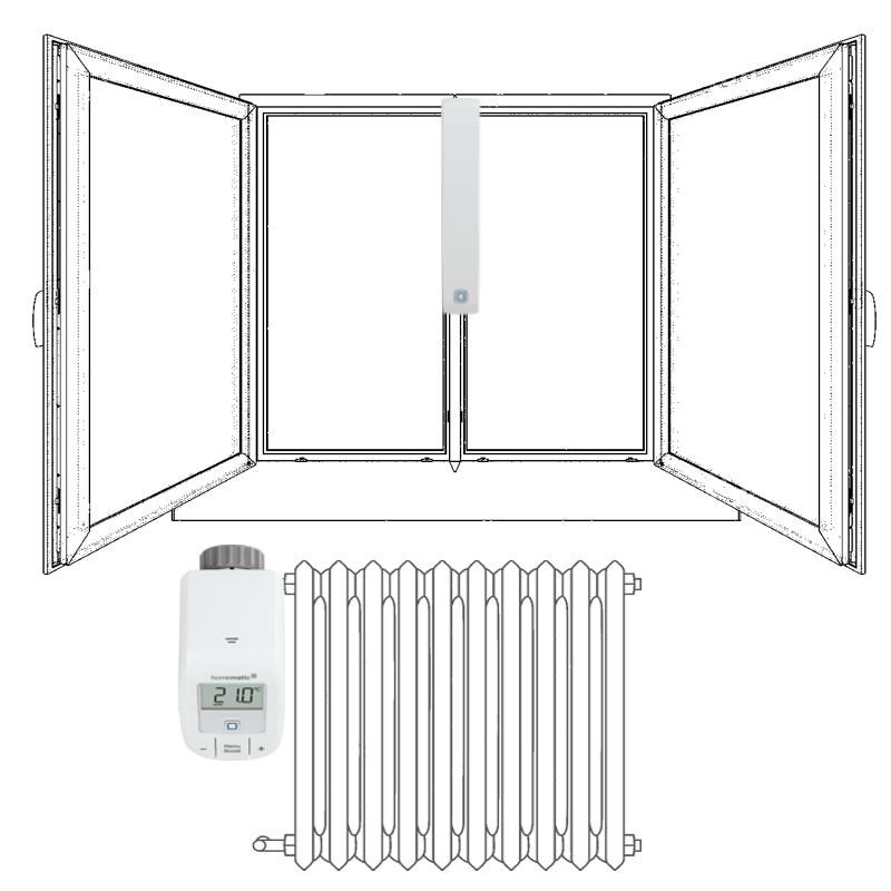 V autonómnej sade pre reguláciu vykurovania (HmIP-SK9) plní okenný a dverový senzor HmIP-SWDM v kombinácii s bezdrôtovou Termostatickou hlavicou Basic HmIP-eTRV-B) funkciu magnetického kontaktu, ktorý v prípade detekcie otvorenia okna odovzdá informáciu a termostatická hlavica automaticky zníži prísun horúcej vody do radiátorového telesa. Keď sa okno zavrie, radiátor začne znovu zvyšovať teplotu v miestnosti.