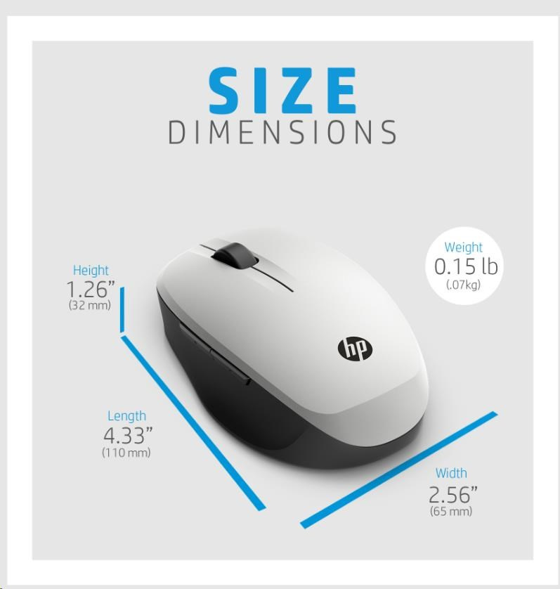 Myš HP Dual Mode Silver Mouse 300 - myš bluetooth, pripojenie k dvom počítačom súčasne