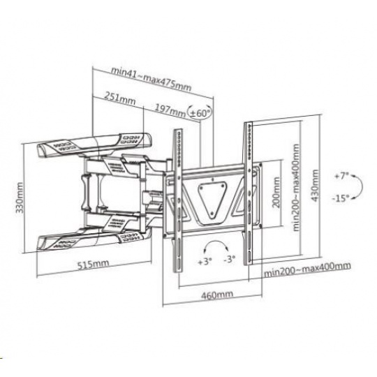Špičkový nástenný držák s polohovaním TV 32-80", otočný, sklopný, výsuvný Nástenný držiak na televíziu, ktorý vyniká skvelou nastaviteľnosťou, výbornou konštrukciou a krásnym dizajnom. Vhodný je na všetky typy a značky televízií, ktorých hmotnosť nie je vyššia ako 45kg a ktoré podporujú VESA štandardy od 200x200 do 400x400. Unikátna konštrukcia držiaka umožňuje zasunutie televízie ku stene na vzdialenosť iba 41mm a maximálna vysunutie až na vzdialenosť 475mm. Otáčanie je možné na obe strany minimálne o 60°, náklon je pevných 15° nadol alebo 7° nahor. Držiak podporuje korekciu roviny obrazovky, konštrukcia je osadená krytmi pre vedenie káblov. Držiak Fiber Mounts Super-2 odporúčame aj náročným používateľom, vďaka svojej kvalite, dizajnu, nastaviteľnosti, kvalitnému spracovaniu a dostupnej cene je dostupný takmer pre každého. Fiber Mounts Super-2 je špičkový držiak na televízie 37-80" za skvelú cenu, vhodný nielen pre náročných používateľov Technické údaje: nosnosť 45kg podpora VESA štandardu 200x200 až 400x400 vhodný na televízie s uhlopriečkou 32" až 80" výsuvný, nastavenie vzdialenosti od steny 41mm až 475mm otočný do strán, minimálne +/- 60° náklopný, smerom nadol až o 15°, nahor až o 7° korekcia roviny obrazovky +/- 3° ultra tenká, silnostenná konštrukcia výborná bezpečnosť a stabilita bez provešenia ramien aj pri maximálnom zaťažení a maximálnom vysunutí krásny dizajn krytky pre vedenie káblov farebné prevedenie čierne záruka 5 rokov Nástenný výsuvný ultraslim držiak na TV Fiber Mounts Super-2 podporuje VESA štandardy: VESA 200x200 VESA 300x200 a 200x300 VESA 300x300 VESA 400x200 a 200x400 VESA 400x300 a 300x400 VESA 400x400