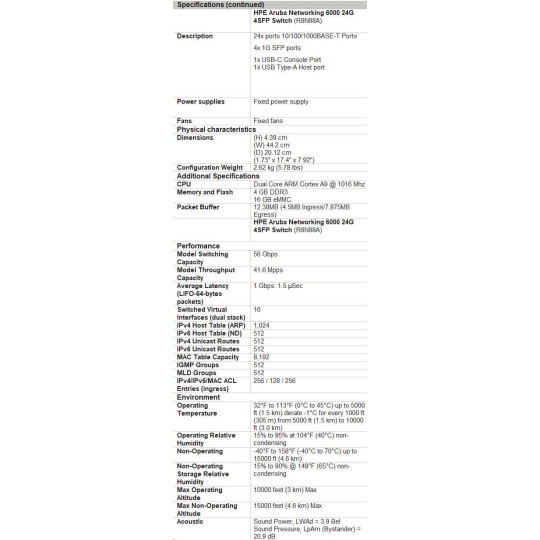 | Model | Aruba 6000 24G 4SFP Switch (R8N88A) |