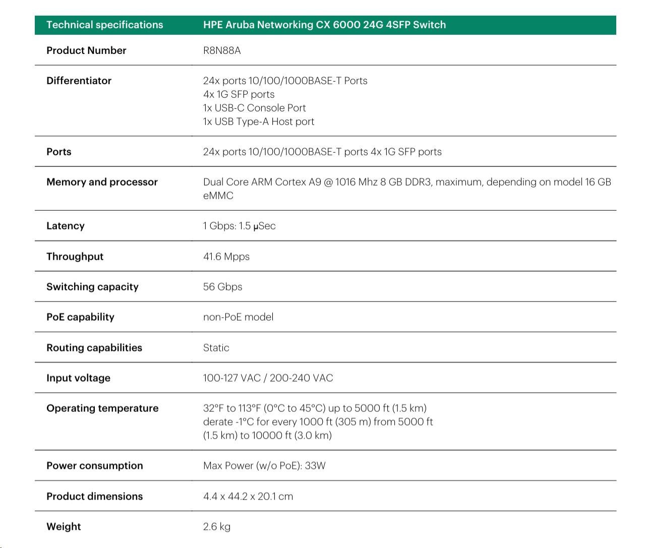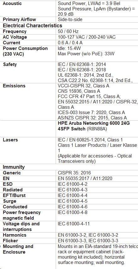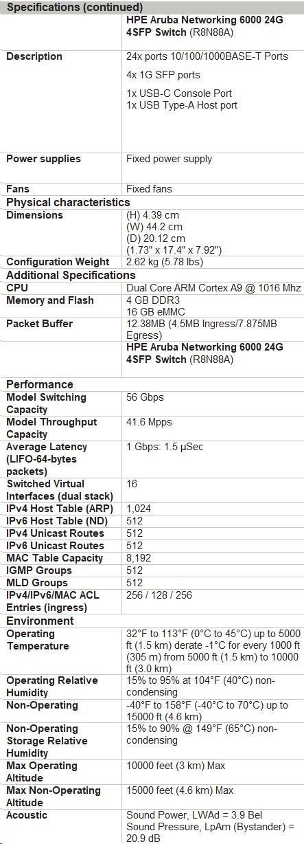 | Model | Aruba 6000 24G 4SFP Switch (R8N88A) |