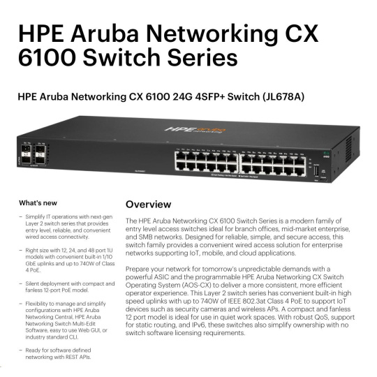 | Aruba 6100 24G 4SFP+ Switch (JL678A) | |