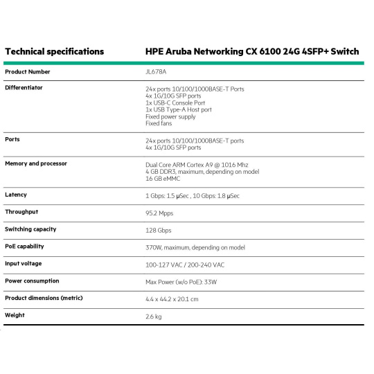 HPE Aruba Networking CX 6100 24G 4SFP+ Switch