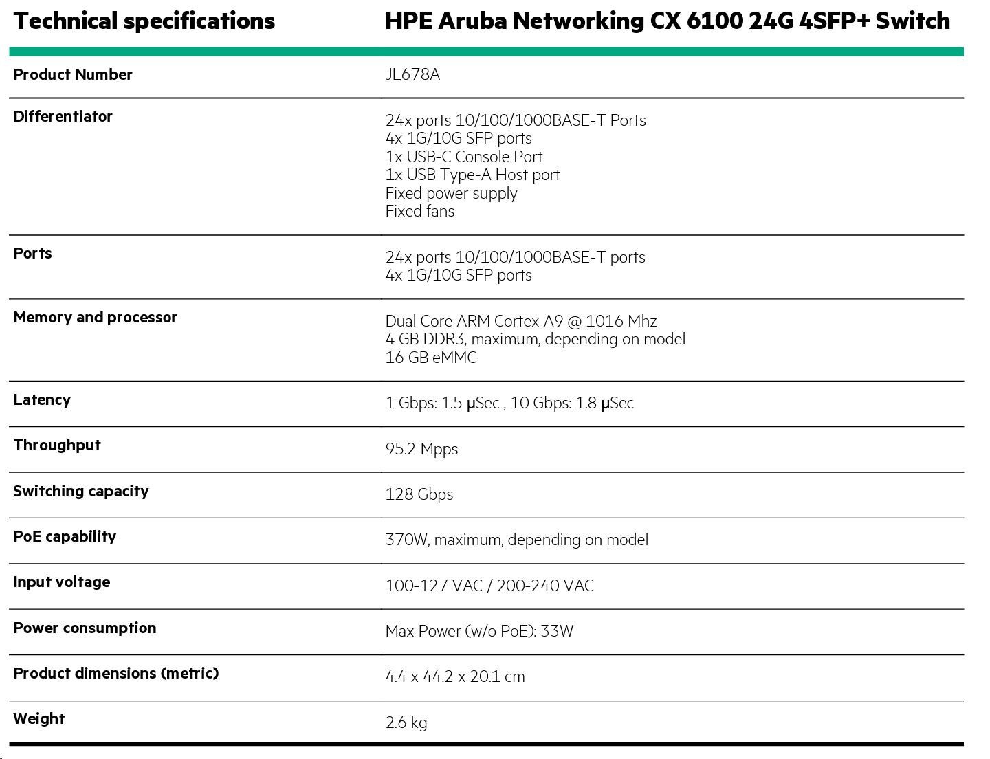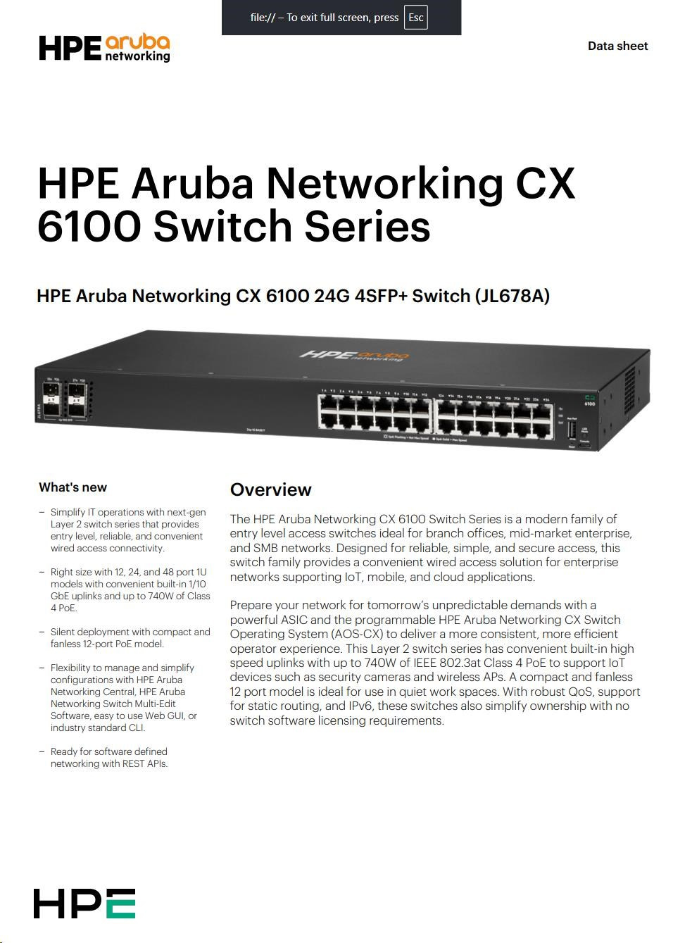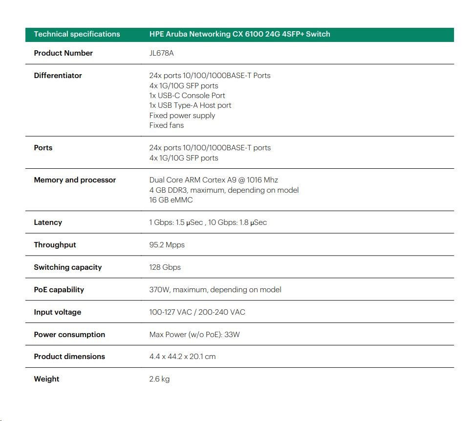 HPE Aruba CX 6100 Series — Key Highlights