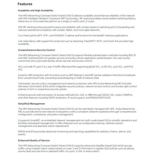HPE Networking Comware 5140 24G 4SFP+ EI Switch JL828AR RENEW