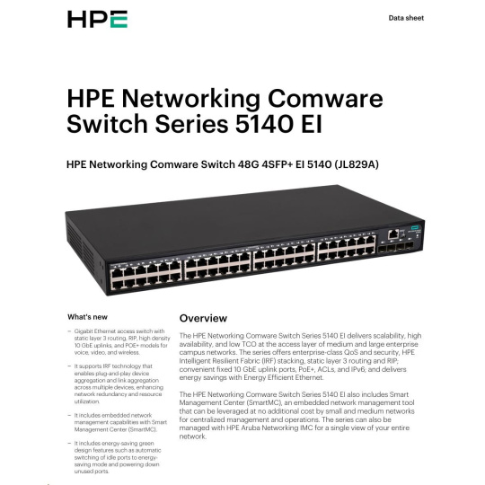 | HPE Networking Comware Switch 48G 4SFP+ EI 5140 | JL829A | |