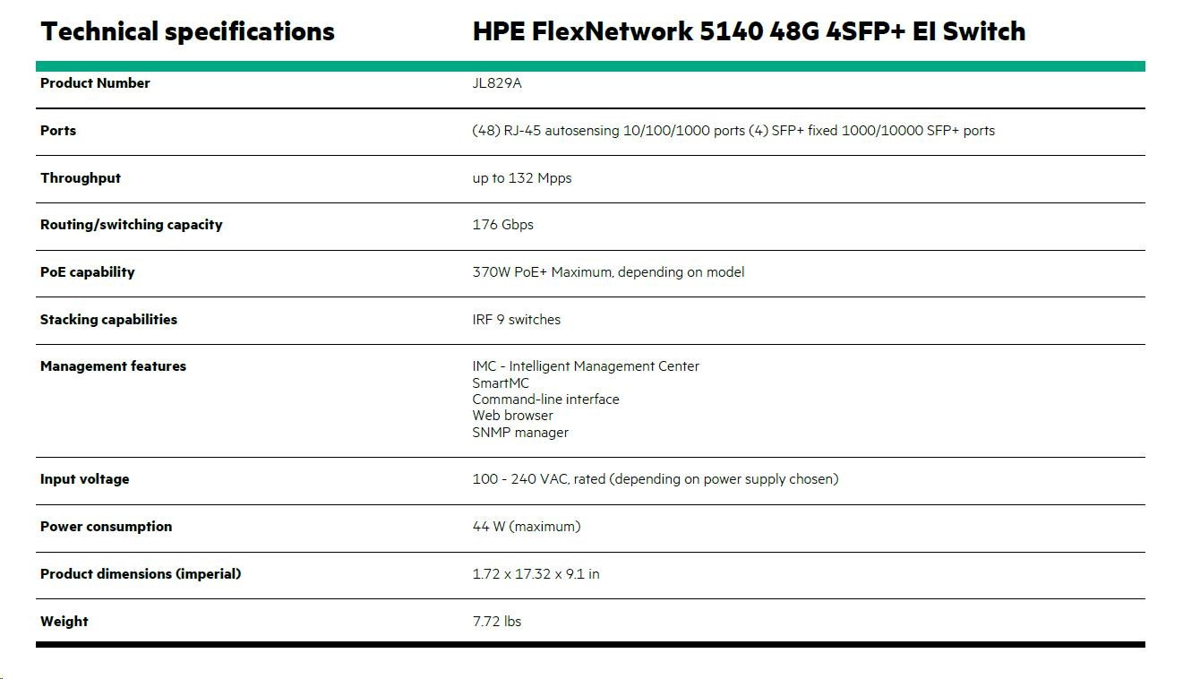 | HPE Networking Comware Switch 48G 4SFP+ EI 5140 | JL829A |