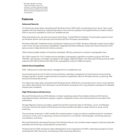 HPE Microsoft Windows Server 2025 16-core Datacenter Reseller Option Kit (CZ EN Russia Pol Sw).