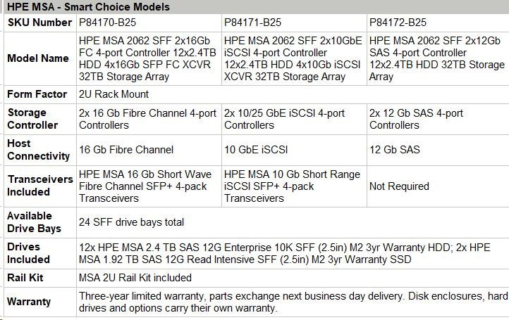 HPE MSA 2062 SFF 2x10GbE iSCSI 4-port Controller 12x2.4TB HDD 4x10Gb iSCSI XCVR 32TB Storage Array Smart Choice.