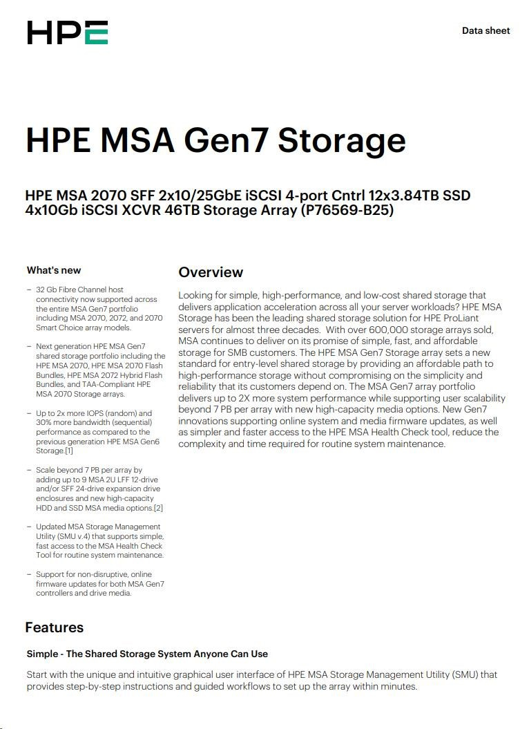 HPE MSA 2070 SFF 2x10/25GbE iSCSI Array.