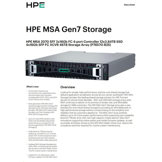 HPE MSA 2070 SFF 2x16Gb FC 4-port Controller 12x3.84TB SSD 4x16Gb SFP FC XCVR 46TB (C8R24B) Storage Array