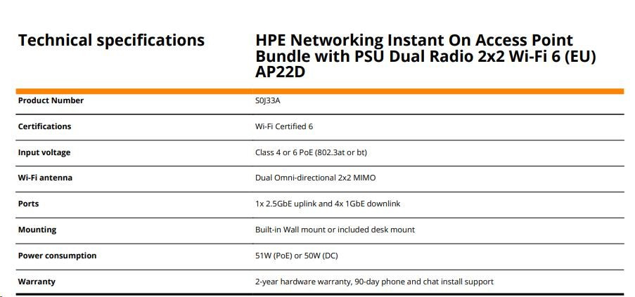 HPE Aruba Instant On Access Point AP22D Bundle with PSU Dual Radio 2x2 Wi-Fi 6 (EU) AP22D (desktop or wallmount)