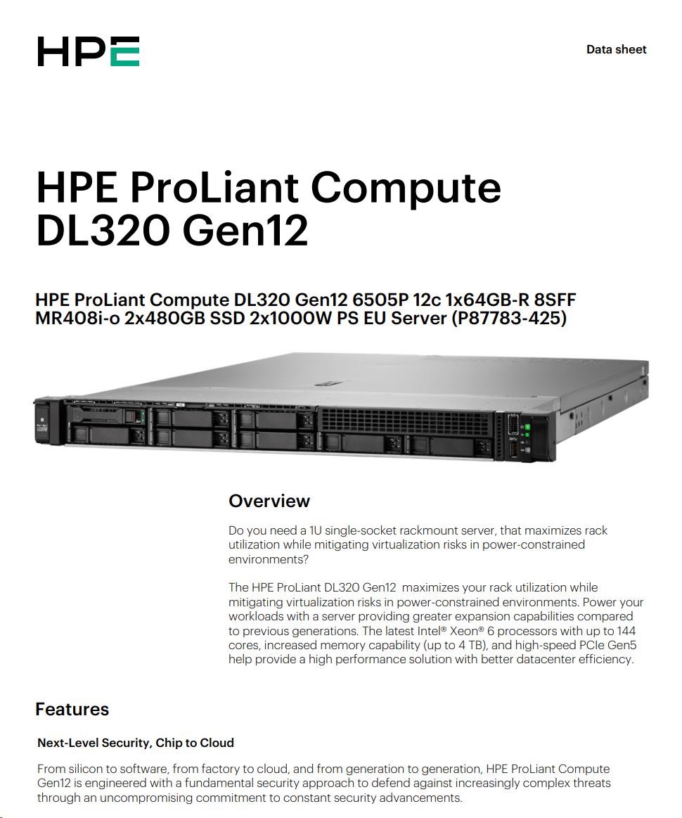 HPE ProLiant Compute DL320 Gen12 servers are engineered for your hybrid world. The new ProLiant Compute Gen12 servers simplify the way you control your business’s compute—from edge to cloud—with a cloud operating experience.