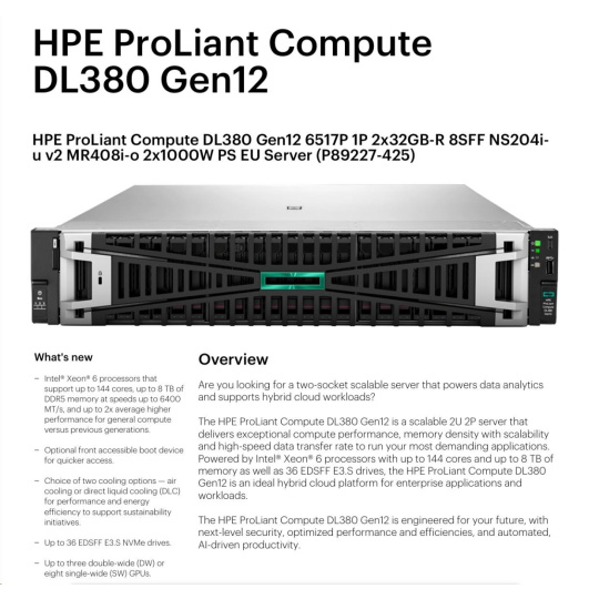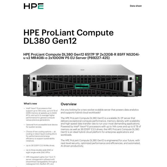 HPE PL DL380g12 6515P (2.4/16C) 2x32G (P69727) 2x480G MR408i-o 8SFF 2x1000W 2p10G-T NBD333 Smart Choice.