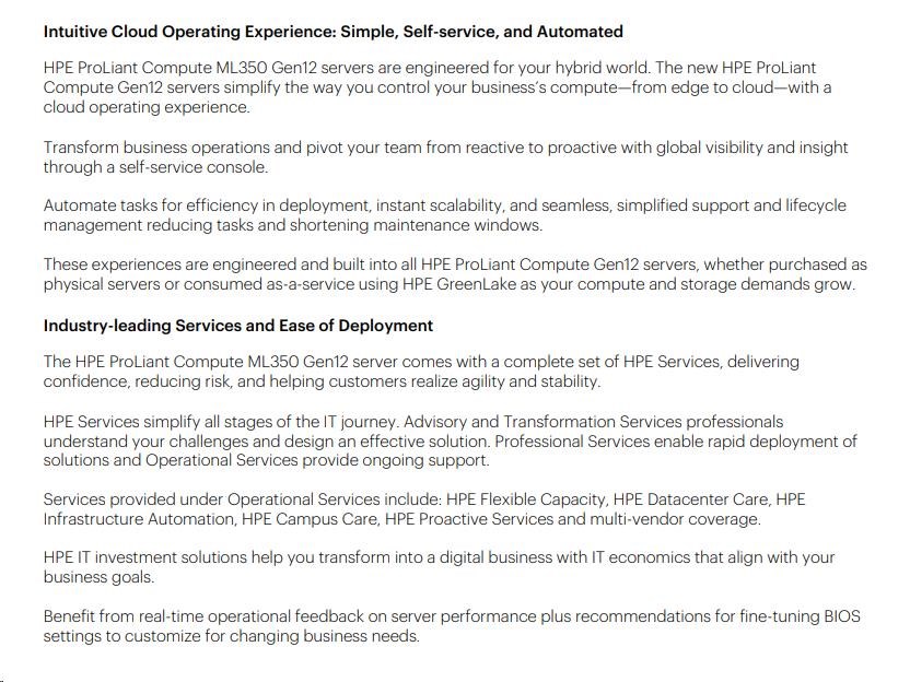 HPE PL ML350 Gen12 6505P (2.2/12C) 1x64G (P69728) 2x960G MR408i-o 8SFF 2x1000W 1GbE NBD333 Smart Choice.