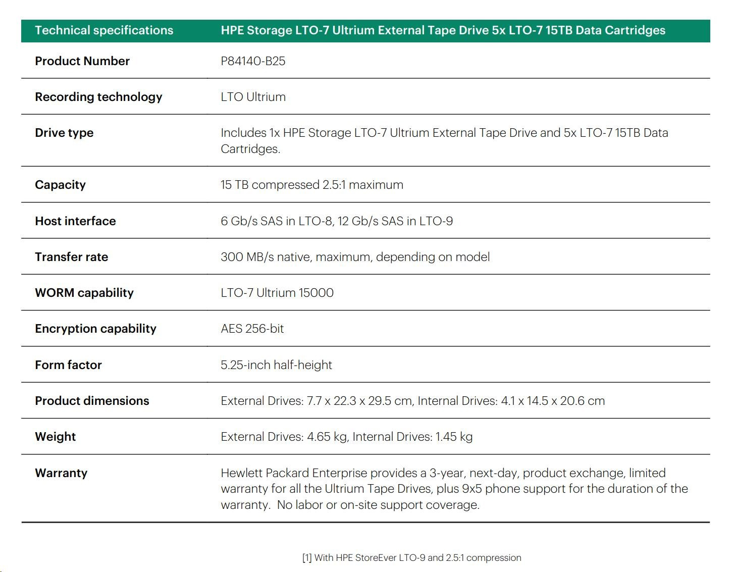 HPE Storage LTO-7 Ultrium External Tape Drive 5x LTO-7 15TB Data Cartridges.