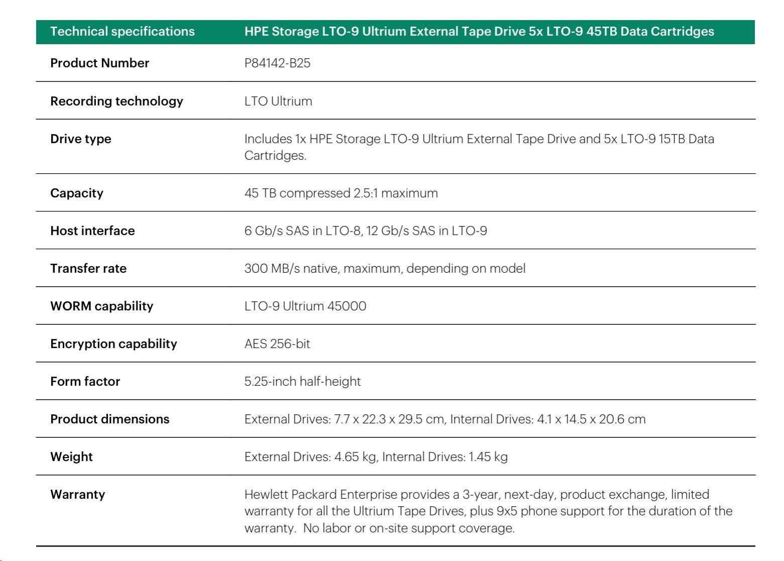 HPE Storage LTO-9 Ultrium External Tape Drive (BC042A) + 5x LTO-9 45TB Data Cartridges (Q2079A) Smart choice.