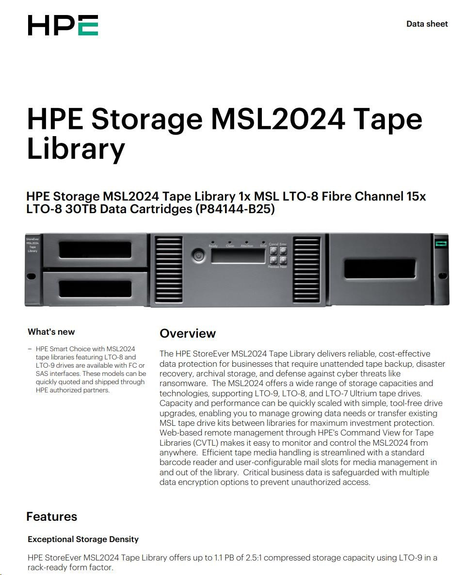 - HPE Smart Choice MSL2024 models featuring LTO-8 and LTO-9 drives