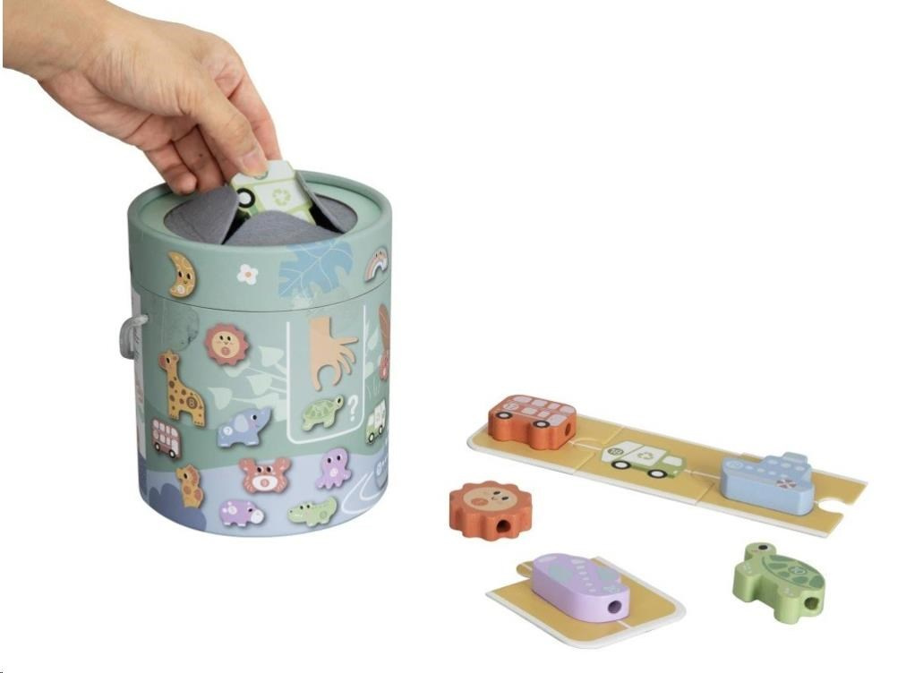 Obľúbená spoločenská hra Hmatej a nájdi 2v1 ponúka veľa zábavy a možností na hru. Hra s očíslovanými drevenými zvieratkami a tvarmi, kyblíkom a navliekačkami dokonale precvičí motorické zručnosti, oboznámi deti so zvieratkami a číslami. Hra Hmatej a nájdi spočíva v hľadaní správneho dreveného tvaru v kyblíku, kde musíte iba hmatom nájsť požadovaný tvar. Hru môžete hrať rôznymi spôsobmi a prispôsobiť ju veku a zručnostiam každého hráča. Užívajte si spoločné chvíle pri hre so zvieratkami zo ZOO.