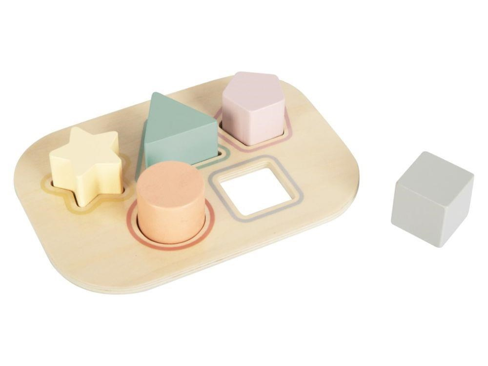 Hracia skrinka s najobľúbenejšími hračkami pre deti od 1 roka je krásnou a zároveň multifunkčnou hračkou. Skrinka sama o sebe je vkladačkou s otvormi vo vekách na vkladanie kociek rôznych tvarov. V praktickej skrinke na deti čaká prekvapenie v podobe ťahacej drevenej žirafy a pyramidy s levyčkom. Sada hračiek je vďaka skrinke ľahko prenosná a rýchlo uprataná, deti si ju môžu vziať so sebou na návštevu aj dovolenku.