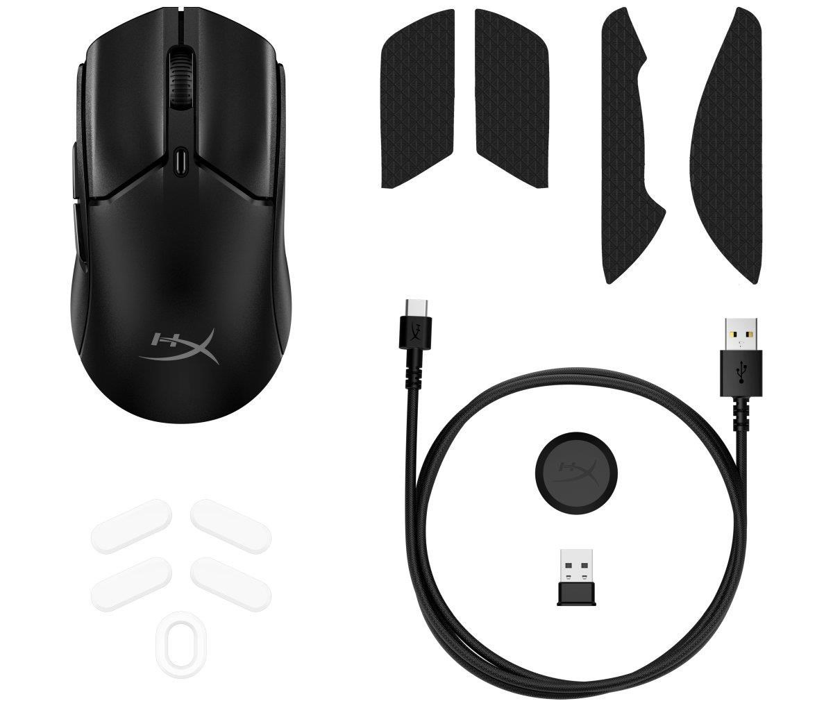 | Obsah balenia | Myš HyperX Pulsefire Haste 2 Mini Wireless, uchopenia HyperX, spodné plôšky s nízkym trením, kábel USB-C na USB-A, bezdrôtový hardvérový kľúč USB, predlžovací adaptér USB, stručná úvodná príručka. |