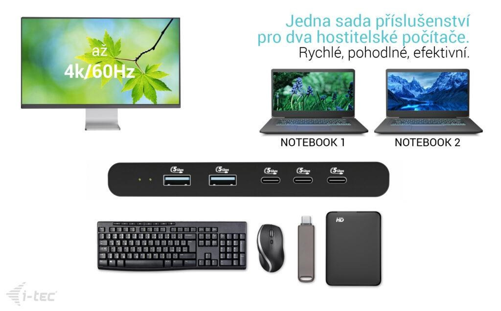 i-tec KVM Docking Station HDMI pre 2 hostiteľov, Power Delivery 2x 100W