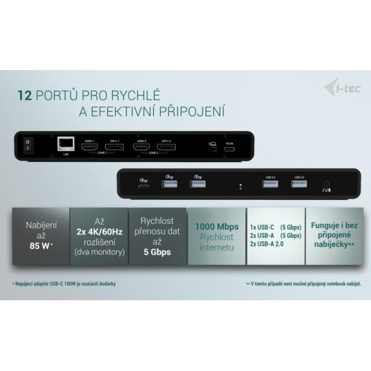 i-tec Univerzálna Dual 4K Display Docking Station + Power Delivery 85W