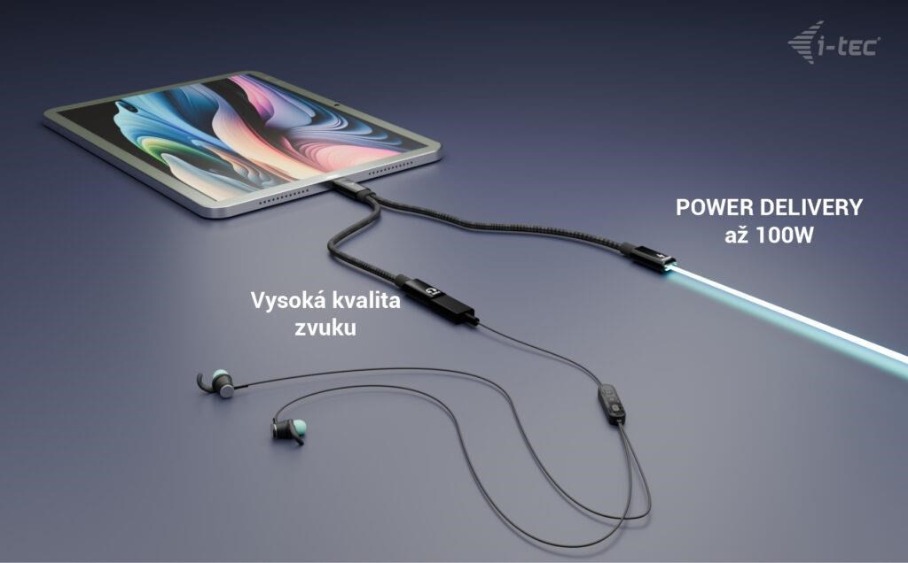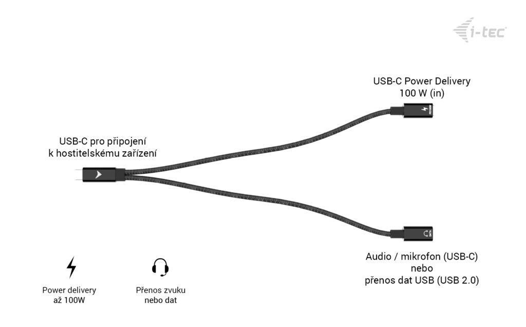 i-tec USB-C Kábel Splitter Audio/Data + Power Delivery 100W