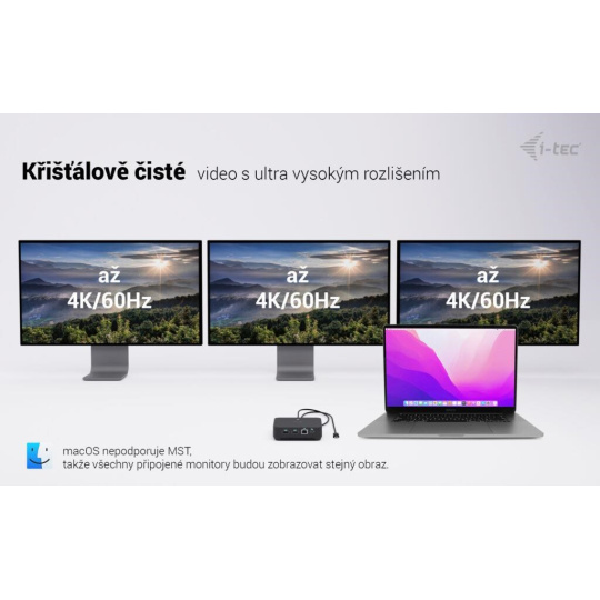 Vysoko výkonná kancelárska dokovacia stanica USB-C s podporou až 3 externých monitorov s rozlíšením 4K. Stanica je kompatibilná s akýmkoľvek notebookom vybaveným portom USB-C, USB4 alebo Thunderbolt 3/4/5. Samozrejmosťou je aj možnosť nabíjania notebooku či tabletu výkonom až 100 W.