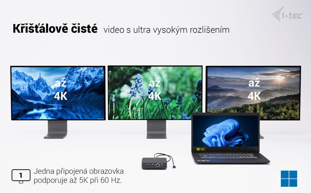 Vysoko výkonná kancelárska dokovacia stanica USB-C s podporou až 3 externých monitorov s rozlíšením 4K. Stanica je kompatibilná s akýmkoľvek notebookom vybaveným portom USB-C, USB4 alebo Thunderbolt 3/4/5. Samozrejmosťou je aj možnosť nabíjania notebooku či tabletu výkonom až 100 W.