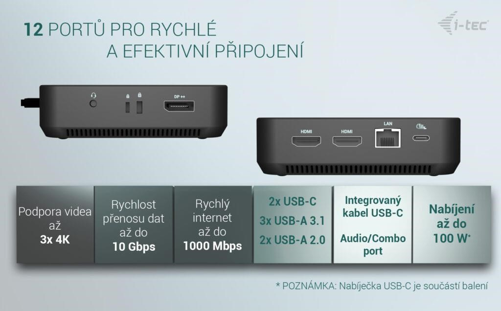 i-tec USB-C DP Dual HDMI Docking Station s Power Delivery 100 W + i-tec Univerzálny nabíjač 100W