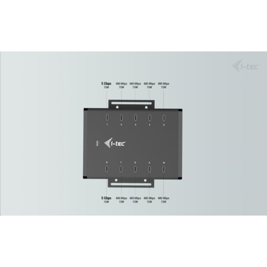 i-tec USB-C/USB-A Metal Charging + data HUB, 15W per port, 10x USB-C
