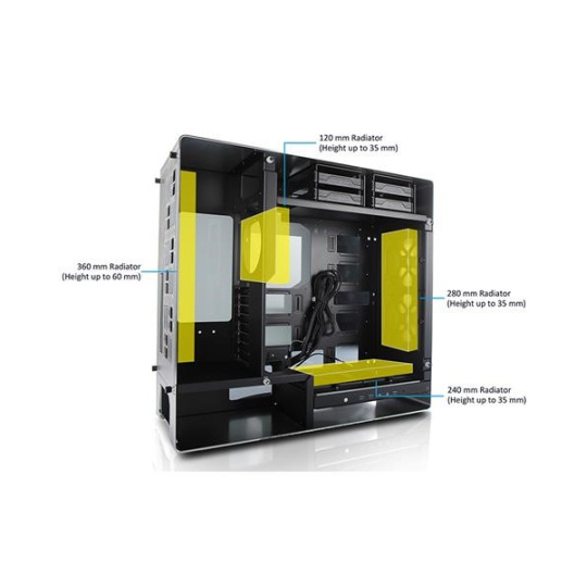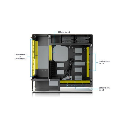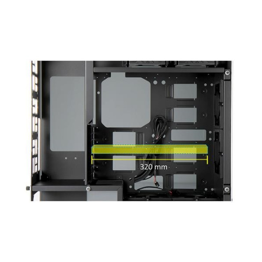 Oddelené pozície pre HDD a PSU zabezpečujú ideálne prúdenie vzduchu cez zadné vetracie otvory do vonkajšieho priestoru bez toho, aby teplému vzduchu bránili základné dosky alebo grafické karty.