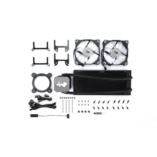 | obsah balenia | InWin SR PRO Series 240mm CPU Liquid Cooler x 1 InWin AJF120 Addressable Fan x 2 ARGB One-Click Controller Balenie skrutiek na montáž ventilátora a chladiča Montážna sada pre CPU Sockets Balenie káblov |