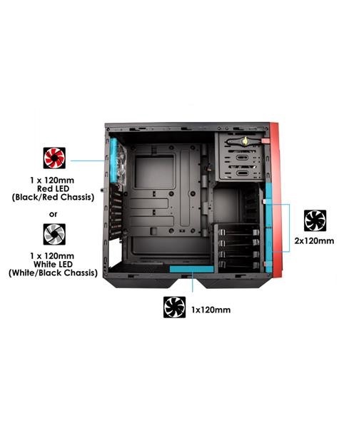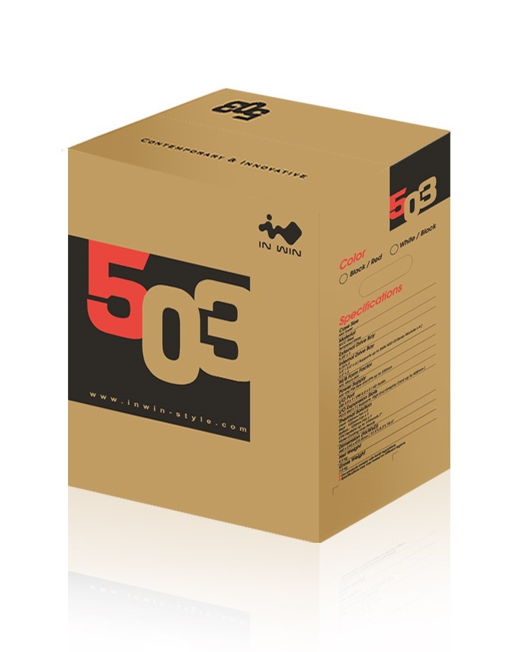 Počítačová skriňa série 503 dokonale ladí s najnovšími PC komponentmi a vytvára krásny minimalistický moderný dizajn. Predná strana je vybavená posuvným krytom, ktorý dokáže zakryť nainštalované disky a nechať vyniknúť detailný ventilačný otvor. Priehľadný bočný panel vám umožní nahliadnuť dovnútra, vaše oči upúta 120mm zadný LED ventilátor, ktorý je súčasťou skrine.
