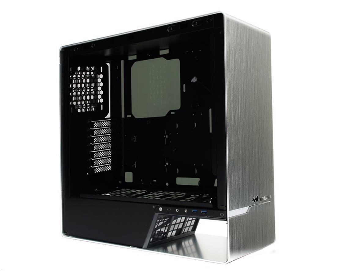 IN WIN 905, Mid Tower, priehľadná strana, bez zdroja napájania, strieborná