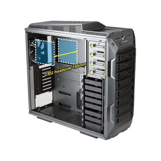 Aby ste si mohli vychutnať maximálny výkon svojho počítača, je možné do skrine zabudovať dve jednotky vodného chladenia, jednu v hornej časti s dĺžkou až 360 mm a druhú v spodnej časti s dĺžkou až 240 mm. Do skrine možno umiestniť až 10 ventilátorov (vrátane 4 predinštalovaných) na optimálnu cirkuláciu vzduchu.