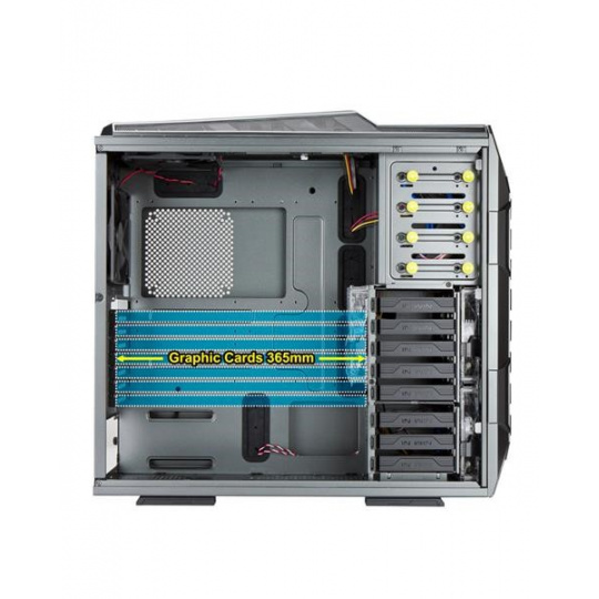 Aby ste si mohli vychutnať maximálny výkon svojho počítača, je možné do skrine zabudovať dve jednotky vodného chladenia, jednu v hornej časti s dĺžkou až 360 mm a druhú v spodnej časti s dĺžkou až 240 mm. Do skrine možno umiestniť až 10 ventilátorov (vrátane 4 predinštalovaných) na optimálnu cirkuláciu vzduchu.