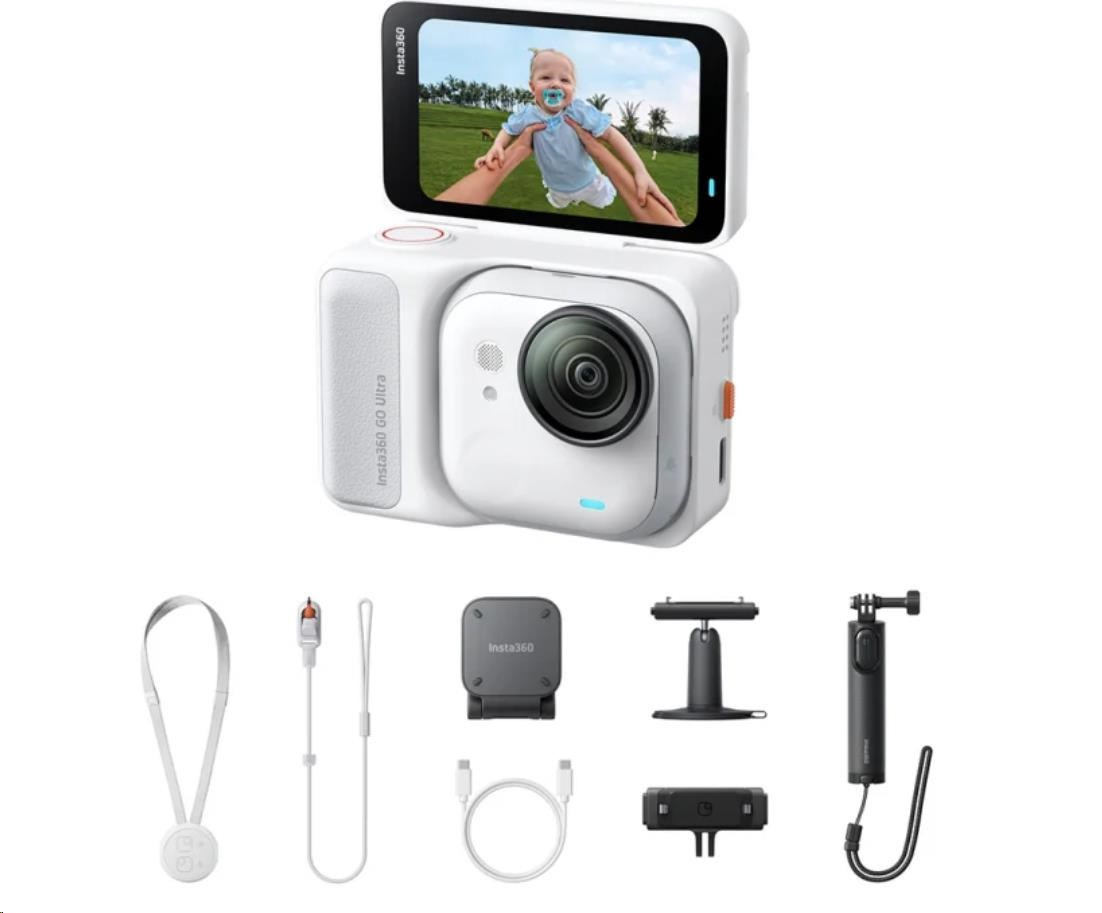 Insta360 GO Ultra Creator Bundle miniaturní akční kamera, 4K Ultra HD, 60fps, magnetický systém uchycení, bílá
