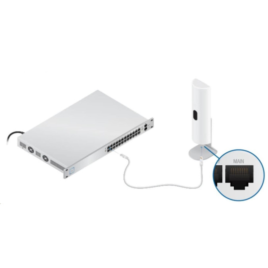 Zariadenie Ubiquiti U-LTE-Pro môžete umiestniť kdekoľvek, kde je najlepší signál, pretože ho možno napájať pomocou 802.3at PoE+ z prepínača, napr. ako napríklad UniFI PoE Switch. Môžete ho pripevniť na stenu pomocou montážnej konzoly alebo máte možnosť ho prilepiť a pripevniť na povrch. Zariadenie má sekundárny port, ktorý ponúka premostenie a pasívny priechod PoE (užitočné pre kameru, prístupový bod alebo iné zariadenie).