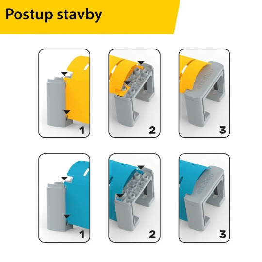 Sada obsahuje 2 stanice a 2 tunelové vložky, z ktorých tieto prvky veľmi ľahko vytvoríte. Skladacie listy sú farebne odlíšené a navrhnuté na kombináciu s opornými vežami (predávajú sa samostatne). Na ich výrobu bol použitý odolný a ekologický PP plastový materiál, takže si poradí aj so silnejším prevádzkou.