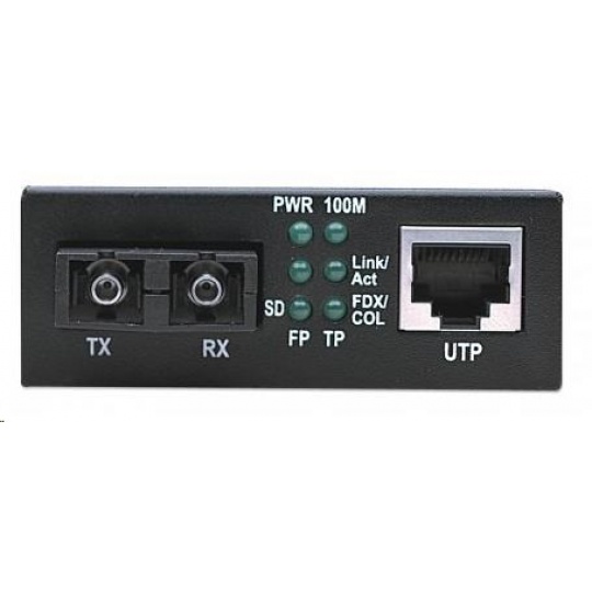 -Rýchlosť prenosu dát: 100 Mb/s -Jeden port 10/100Base-TX RJ45, maximálna vzdialenosť 100 m / 300 ft. -RJ45 port s podporou Auto MDI/MDI-X a automatickým vyjednávaním -Jeden 100Base-FX viacrežimový optický SC duplexný port -Podpora vzdialenosti optických vlákien: do 2 km / 1.24 míľ (62.5/125 alebo 50/125 µm kábel) -Vlnová dĺžka: 1310 nm -Riadenie toku -Stavové LED diódy pre napájanie a Link/TX pre oba porty -Externý napájací adaptér, 5 V DC..
