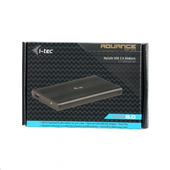 Séria ADVANCE je špičkový rad príslušenstva i-tec, ktorý vám umožní využívať špičkovú technológiu produktov v modernom dizajne a exkluzívnom balení. i-tec USB 3.0 MySafe AluBasic je externý rám pre všetky 2.5" SATA I/II/III HDD alebo SSD s výškou do 9.5 mm. Pripojenie cez USB 3.0 ponúka rýchly a jednoduchý prenos dát (až 5 Gb/s). Spätná kompatibilita s USB 2 je samozrejmosťou.0. Pevná hliníková konštrukcia na optimálny odvod tepla a ochranu disku. Rám sa dodáva s káblom USB.