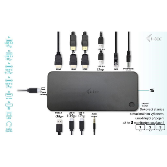 i-tec USB 3.0 / USB-C / Thunderbolt, 3x 4K dokovacia stanica + Power Delivery 100W